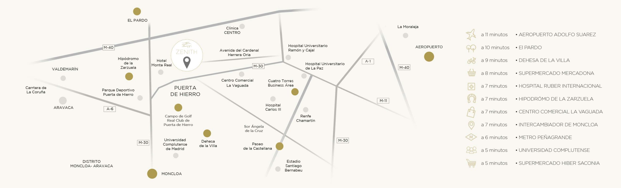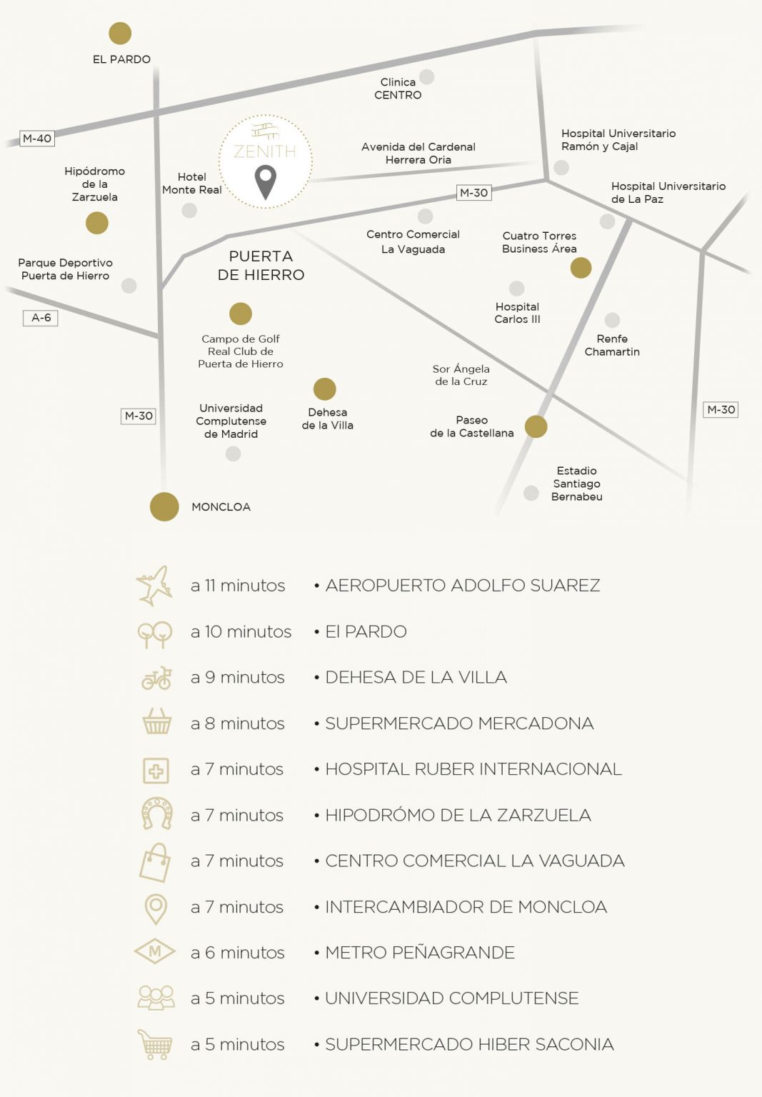 Amplias zonas verdes como el Pardo, La Dehesa de la Villa y campos de golf, Residencial Zenith es sinónimo de calidad de vida.